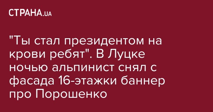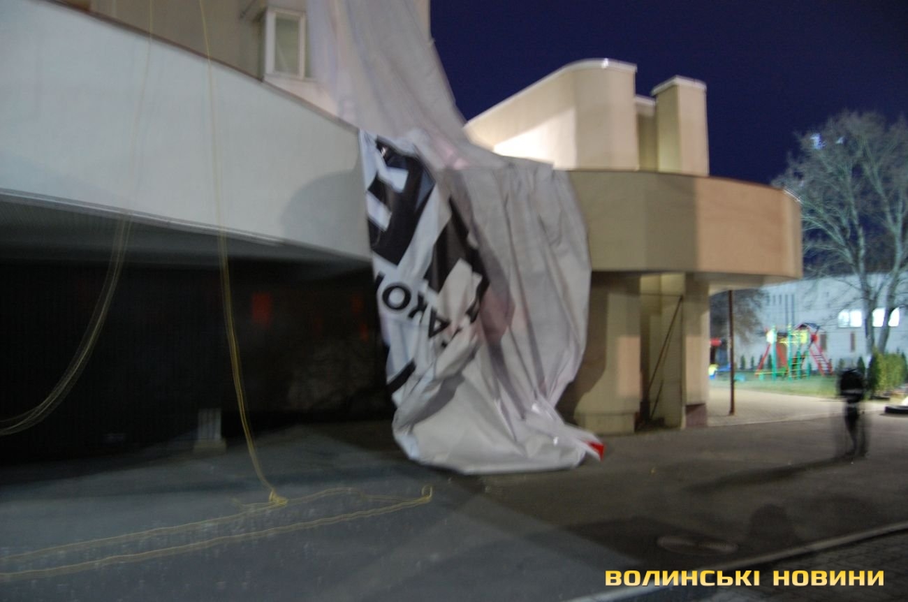 Стали известны детали того, как в центре Луцка срезали с фасада 16-этажного дома баннер-обращение к Петру Порошенко со словами "Ты стал президентом на крови ребят 51 ОМБР. Чтобы скрыть свои преступления, твои генералы ее уничтожили. Волынь такого не прощает".