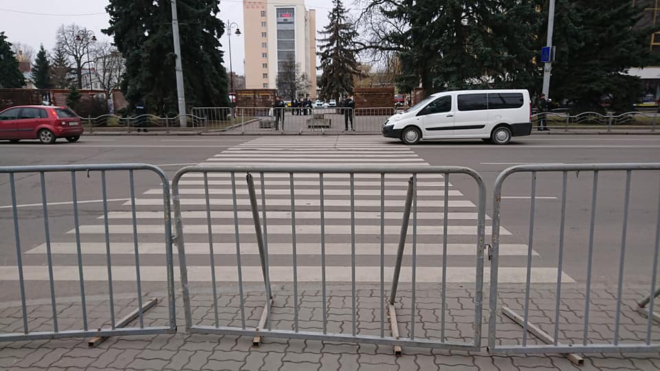 На фото видно, что в Луцке полным ходом идут приготовления к приезду президента.