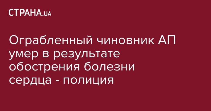 Ограбленный чиновник АП умер в результате обострения болезни сердца - полиция