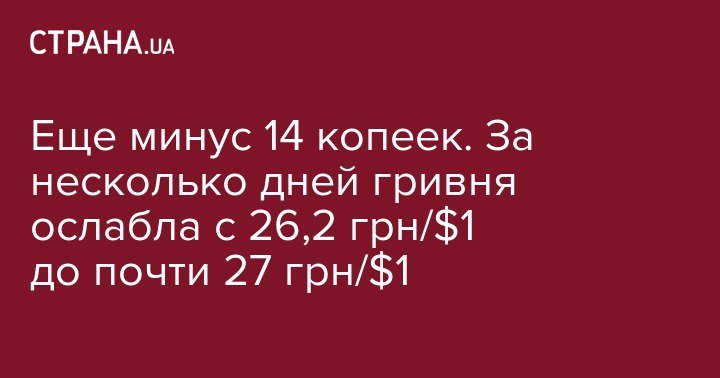 Отметим, что буквально за несколько дней курс гривни развернулся  иона начала падать: нацвалюта на межбанке опустилась с 26,2 грн/$1 до почти 27 грн/$1.
