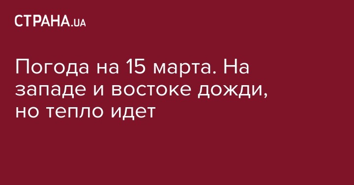 В пятницу, 15 марта, в Украине местами ожидаются дожди. Ветер усилится, но будет относительно тепло. Температура днем +2...+12. Ночью от -4 до +3 градусов. Об этом сообщает Укргидрометцентр.