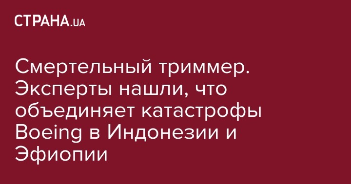 Авиационные эксперты, которые сейчас выясняют причины трагедии в Эфиопии, где разбился Boeing-737 MAX 8 со 157 пассажирами на борту, нашли связь с катастрофой такого же лайнера в Индонезии (произошла в октябре минувшего года, погибло 189 человек - Прим.Ред.).