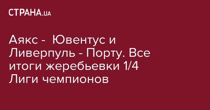 Аякс - Ювентус и Ливерпуль - Порту. Все итоги жеребьевки 1/4 Лиги чемпионов