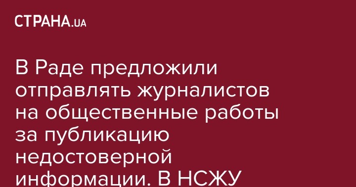 В Раде предложили отправлять журналистов на общественные работы за публикацию недостоверной информации. В НСЖУ заявили об атаке на свободу слова