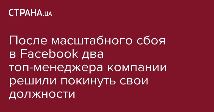 После масштабного сбоя в Facebook два топ-менеджера компании решили покинуть свои должности