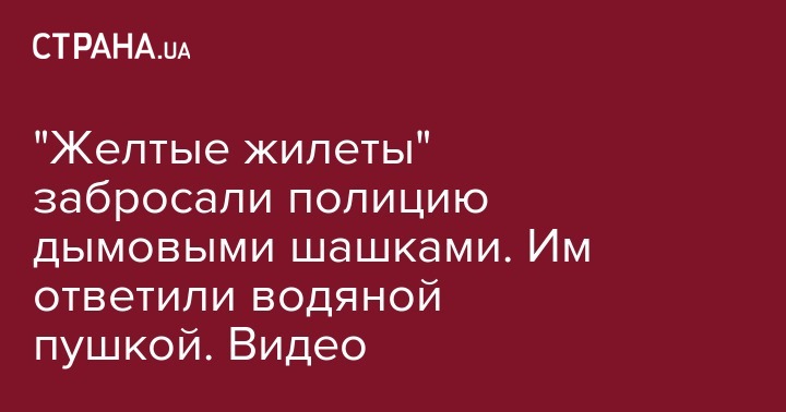 "Желтые жилеты" забросали полицию дымовыми шашками. Им ответили водяной пушкой. Видео