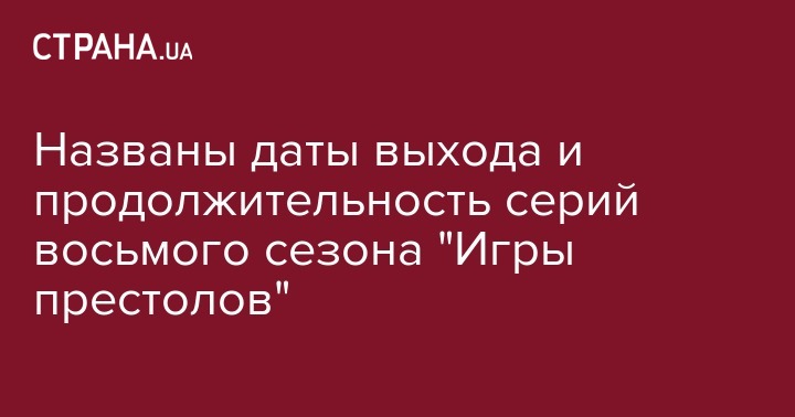 Американский телеканал HBO назвал даты выхода и продолжительность серий восьмого сезона "Игры престолов". Об этом сообщает Variety.