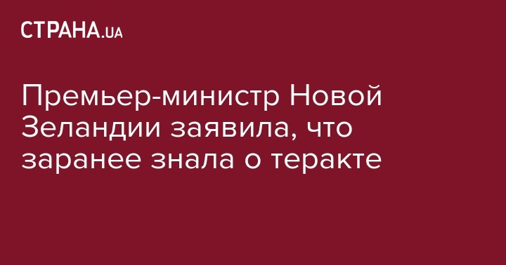 Премьер-министр Новой Зеландии Джасинда Ардерн сообщила, что заранее знала о совершении теракта в ее стране. Об этом пишет издание The Guardian.