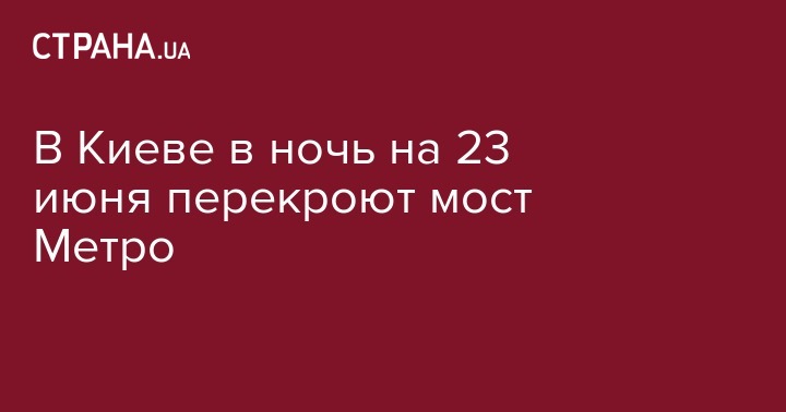 "С 22:00 22 июня до 6:00 23 июня в связи с ремонтом асфальтобетонного покрытия на мосту Метро через Днепр в направлении движения с Броварского проспекта на Набережное шоссе будет частично ограничено движение автотранспорта в месте выполнения работ", - сказано в нем.