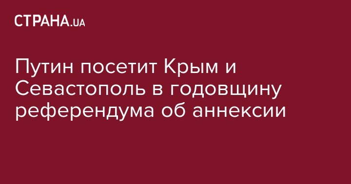 Президент России Владимир Путин посетит аннексированный Крым и Севастополь. Он примет участие в акциях, посвященных годовщине так называемого "референдума о воссоединении Крыма с Россией". Об этом передает ТАСС со ссылкой на пресс-службу Кремля.