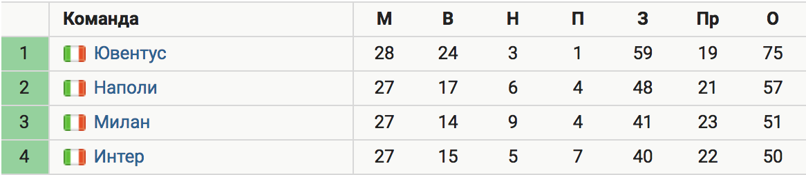 "Ювентус", несмотря на поражение, сохраняет уверенное лидерство в турнирной таблице. Идущий вторым "Наполи" может сократить отставание от туринцев до 15 очков, если сегодня победит "Удинезе".