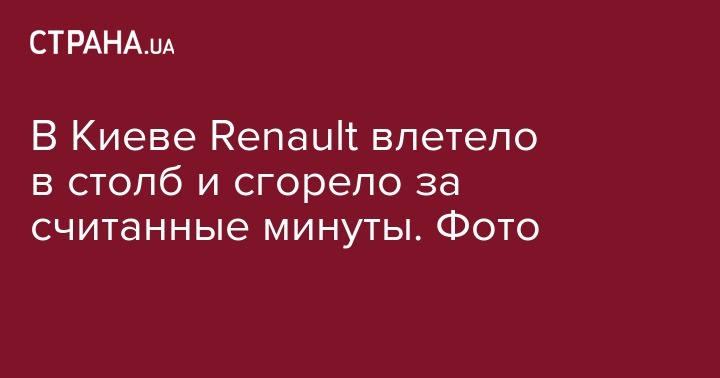 Ранним утром 18 марта, в Киеве произошло очередное огненное ДТП. На улице Жилянской, около 05.00, водитель автомобиля Renault Scenic на полном ходу влетел в электроопору. В результате машина сгорела дотла, а водителя госпитализировали с тяжелыми травмами.