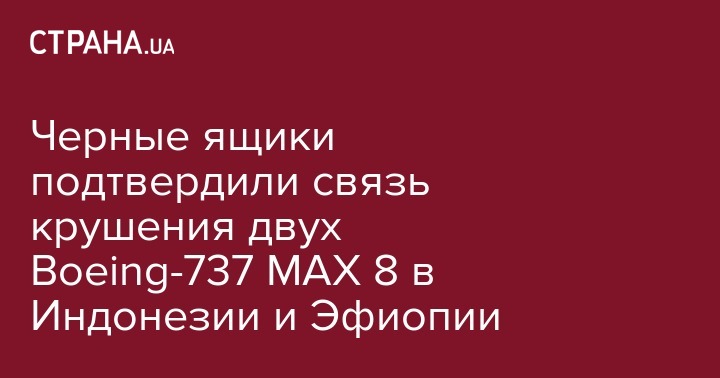 Черные ящики подтвердили связь крушения двух Boeing-737 MAX 8 в Индонезии и Эфиопии