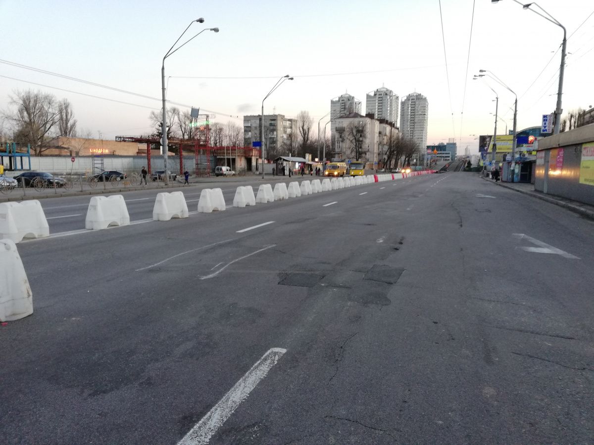 Это направление на въезд в город, утренний маршрут тех, кто живет в Святошинском районе, пригороде и, что немаловажно, въезжает в город с западного направления. Здесь добавилось два светофора - на перекрестке с улицей Гарматной и, внимание, сразу за самим мостом! И если первый светофор просматривается хорошо, то второй за пролетами моста видно плохо, следует быть внимательным! Пробки здесь собираются плотные, даже в воскресенье. В понедельник утром, 18 марта тоже, уже с 07.00. Объехать этот участок можно по проспекту Леся Курбаса, вдоль линии скоростного трамвая. Но и там уже заторы, и свой "ремонт" (по факту просто сужение дороги) моста.