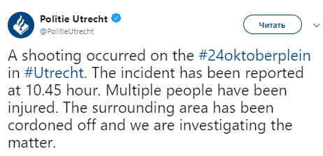 Очевидец рассказал RTV Utrecht, что стрелков было несколько. Он говорит, что видел четырех человек, которые разбежались в разные стороны.