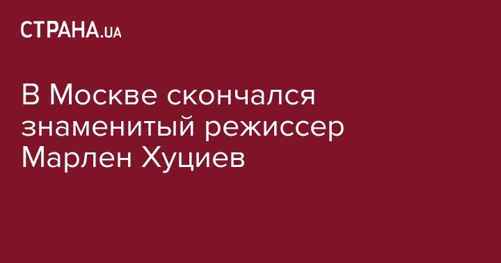 Печальная новость пришла из Москвы. Сегодня, 19 марта, около 07.00 здесь скончался народный артист СССР, режиссер Марлен Хуциев. Он умер в возрасте 93 лет.