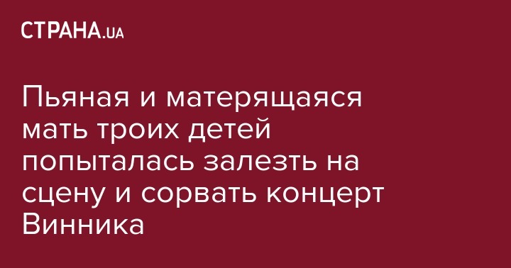 Уточняется, что во время выступления Винника нетрезвая поклонница пыталась забраться на сцену.Вероятно, для нее это было непросто, поскольку процесс сопровождался отчаянной матерной бранью.