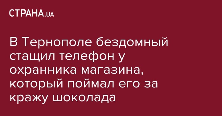 "Тернопольский бездомный сначала похитил шоколад, а после этого забрал мобильный у представителя охраны", - говорится в сообщении.