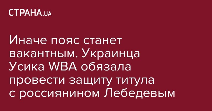 Всемирная боксерская ассоциация WBA обязала абсолютного чемпиона мира в первом тяжелом весе Александра Усика (16-0, 12 КО) провести обязательную защиту чемпионского пояса в поединке с россиянином Денисом Лебедевым (32-2, 23 КО).