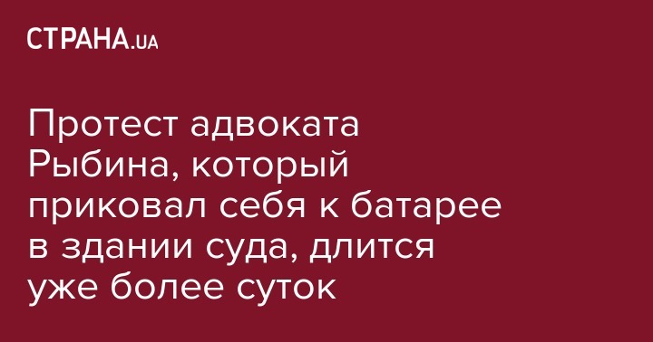 Сегодня, 20 марта, прошло уже 24 часа (сутки) с момента того, как адвокат Валентин Рыбин приковал себя наручниками в кабинете судьи Днепровского райсуда Киева Мирослава Марченко в знак протеста об очередном переносе дела о госизмене бывшего министра здравоохранения Крыма после аннексии полуострова Петра Михальчевского.
