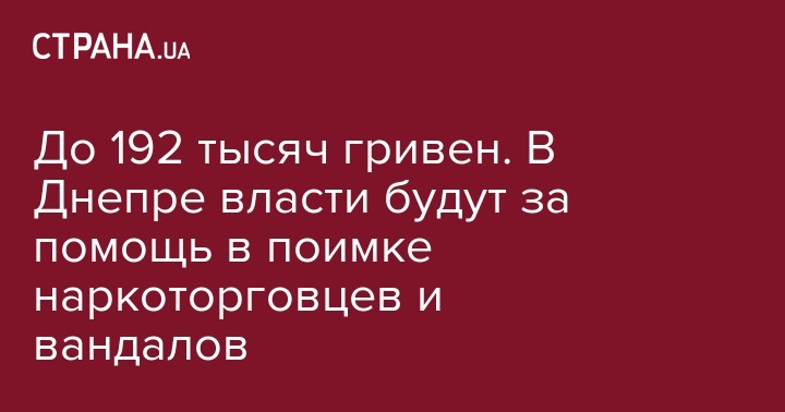 "Предоставление денежного вознаграждения гражданам города в расчете на одного человека в размере до 100 прожиточных минимумов для трудоспособных лиц, установленных на 1 января соответствующего года (по состоянию на 01.19 - 1921 гривня - Прим. Ред.), за информацию относительно правонарушителей, действиями которых причинен вред имуществу территориальной общины города Днепра, с помощью которой правонарушителей можно привлечь к административной (судом или административной комиссией), гражданской или уголовной ответственности", - говорится в тексте решения.