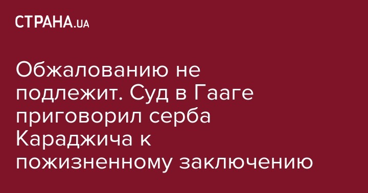 "Апелляционная палата согласна с трибуналом, что приговор - 40 лет тюремного заключения - не является адекватным с учетом тяжести уголовных преступлений, совершенных Караджичем, как и приговор, предложенный судебной палатой - он (приговор) признан необоснованным и неправомочным. Судебная палата сделала ошибку, когда вынесла приговор на 40 лет тюремного заключения", - отмечает РТС. Это окончательный вердикт, не подлежащий обжалованию.