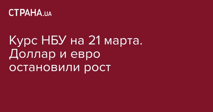 Также регулятор установил курс евро на уровне 30,84 гривен за евро. Официальный курс евро на 21 марта установлен на уровне 3084,641 гривны за 100 евро.