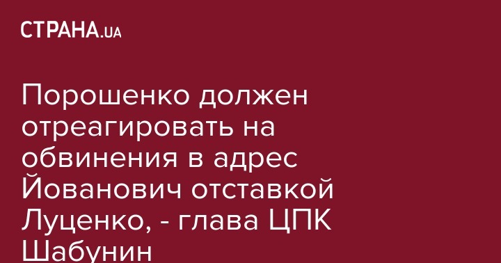 Президент Петр Порошенко должен отреагировать на обвинения, которые генпрокурор Юрий Луценко высказал в адрес посла США в Украине Мари Йованович, представлением на увольнение. Такое заявление сделал руководитель Центра Противодействия коррупции Виталий Шабунин на своей странице в соцсети.