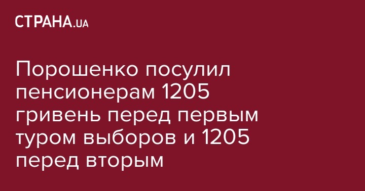 Порошенко посулил пенсионерам 1205 гривень перед первым туром выборов и 1205 перед вторым