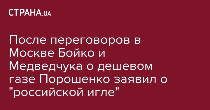 Президент Украины Петр Порошенко раскритиковал встречу кандидата в президенты Юрия Бойко и лидера политсовета "Оппозиционной платформы - За життя" Виктора Медведчука с премьер-министром РФ и руководством "Газпрома", на которой речь шла о возможном подписании контракта о покупке Украиной российского газа по более низкой цене.