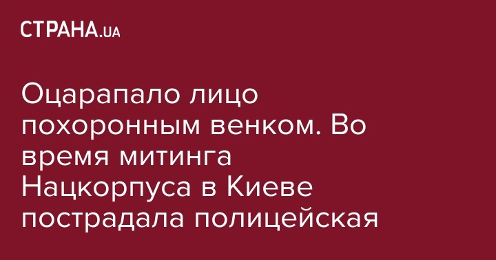 Оцарапало лицо похоронным венком. Во время митинга Нацкорпуса в Киеве пострадала полицейская