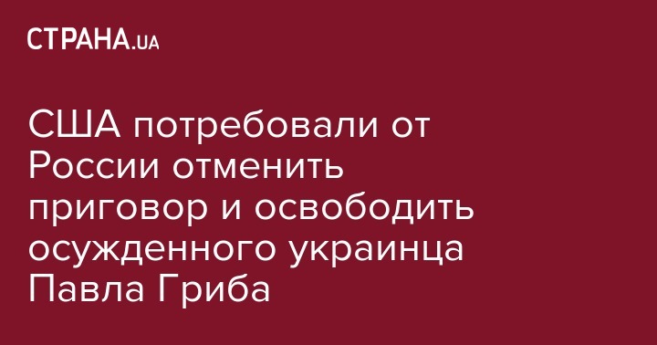 США потребовали от России отменить приговор и освободить осужденного украинца Павла Гриба