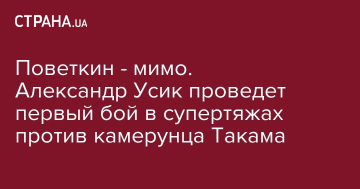 Александр Усик проведет свой первый бой в супертяжелом весе против камерунца Карлоса Такама, а не с Александром Поветкиным. Об этом сообщил украинский промоутер спортсмена Александр Красюк в комментарии сайту Sportbox.