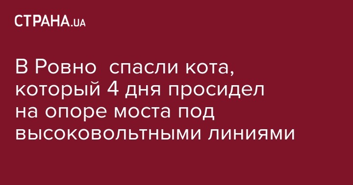 В Ровно электрики спасли кота, который четыре дня просидел на опоре железнодорожного моста высотой десять метров. Четырехлапый находился под конструкцией моста, в которую он сумел пробраться, а вот вылезти назад у него не получилось. Об этом сообщает ТСН.