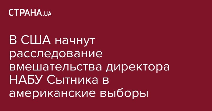 В США начнут расследование вмешательства директора НАБУ Сытника в американские выборы