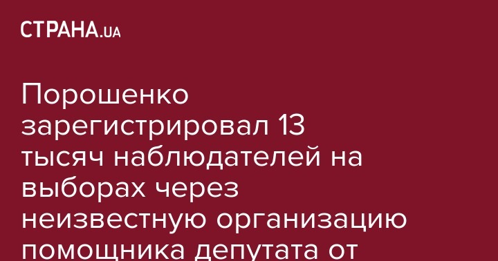 Наблюдателей для Порошенко зарегистрировала организация "Український центр демократичного суспільства" (10911 человек, что больше, чем у команды ЗЕ и "Опоры"), еще 2335 наблюдателей появились от организации "Солидарна молодь".
