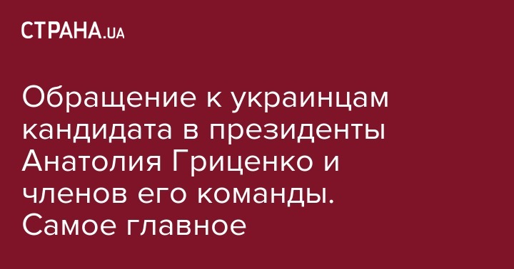 Обращение к украинцам кандидата в президенты Анатолия Гриценко и членов его команды. Самое главное
