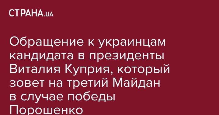 Виталий Куприй продолжил: "Если ручная ЦИК извратит результаты и выведет Порошенко во второй тур, то я буду призывать выходить на третий майдана. Хорошо, что у нас есть Национальный корпус. И все мы выступим против узурпации власти".