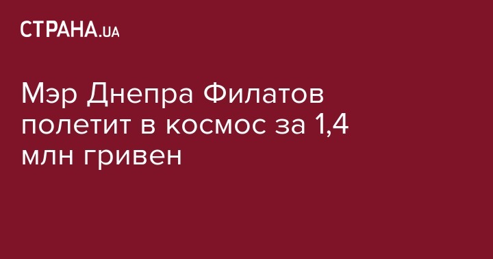 Мэр Днепра Филатов полетит в космос за 1,4 млн гривен