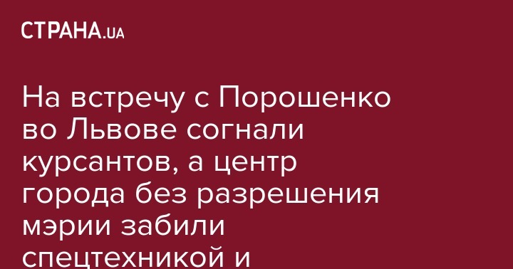 На встречу с Порошенко во Львове согнали курсантов, а центр города без разрешения мэрии забили спецтехникой и титушками. Фото