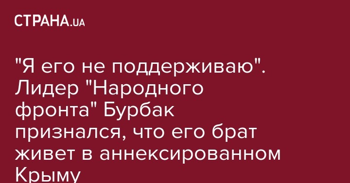 "Сразу после начала оккупации я лично уговаривал жену брата с детьми переехать к нашим родителям, предлагал хорошо подумать. Однако, она не изменила своих намерений. Мой брат Алексей остался вместе с семьей. Это очень непростая ситуация в семье моего родного брата. Это большая печаль для наших родителей и для меня лично. Мой брат официально пересекает государственную границу Украины, чтобы посещать наших родителей и не терять связей с друзьями и близкими. Семья моего брата самостоятельна в решениях относительно собственного быта и будущего. Это было их собственное решение. И я его совершенно не разделяю", - написал Бурбак.