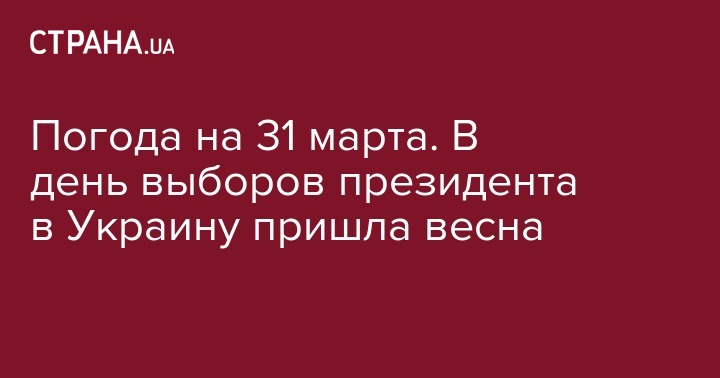 В воскресенье, 31 марта, когда в стране проходят президентские выборы, в Украине установится теплая и солнечная погода без осадков. Об этом сообщает пресс-служба Укргидрометцентра.