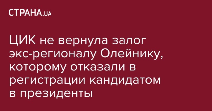 ЦИК не вернула залог экс-регионалу Олейнику, которому отказали в регистрации кандидатом в президенты