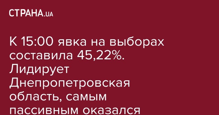 По состоянию на 15:00 воскресенья, 31 марта, явка на выборах президента Украины составляет 45,22%. Об этом свидетельствует информация на сайте ЦИК
