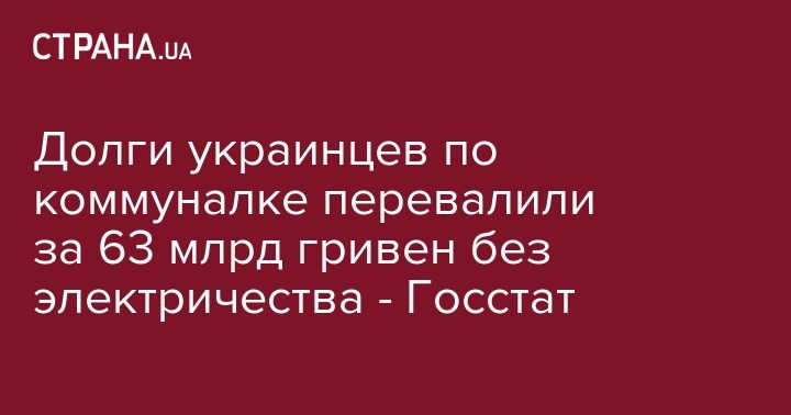 Долги украинцев по коммуналке перевалили за 63 млрд гривен без электричества - Госстат