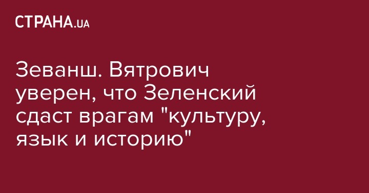 "Зеванш. Они готовы сдать культуру, язык, историю. Самое главное из того, что мы завоевали за последние пять лет. То, за что гибли лучшие на Майдане и на Донбассе. Упустить их жертву и наши усилия. Поменять их на реализацию несуществующей программы несуществующей командой", - написал Вятрович.