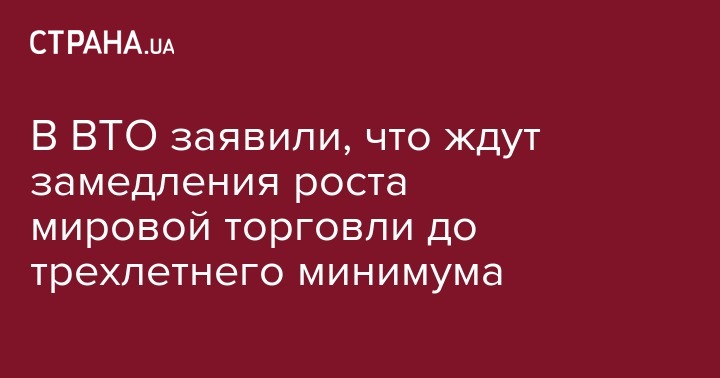 В ВТО заявили, что ждут замедления роста мировой торговли до трехлетнего минимума