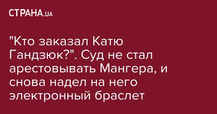 Напомним, 11 февраля Мангеру объявили подозрение в организации убийства Гандзюк. Суд арестовал его до 3 марта с альтернативой внесения почти 2,5 млн гривен залога. 15 февраля за него внесли залог, после чего Мангер покинул изолятор и заявил, что будет сотрудничать со следствием.