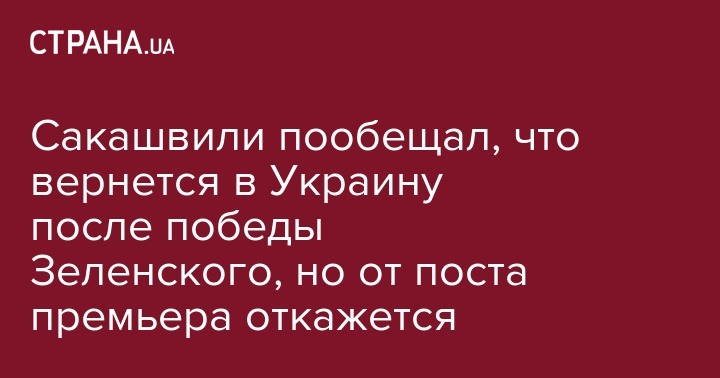 Сакашвили пообещал, что вернется в Украину после победы Зеленского, но от поста премьера откажется