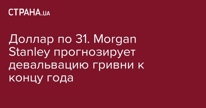 Доллар по 31. Morgan Stanley прогнозирует девальвацию гривни к концу года